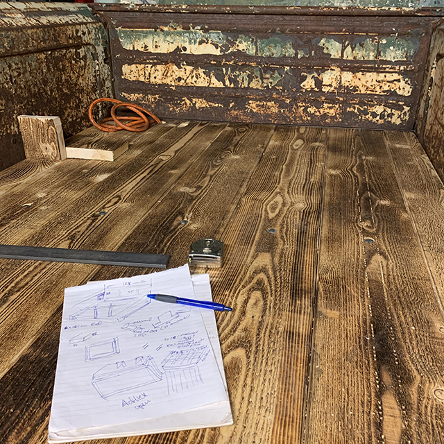 The 'ol '46 truck bed looks great Skip. Love that wood work you've done. I might not have put the fuel cell and battery in the bed, only because I like lots of cargo room in my truck. But regardless of what our taste is, this is looking really nice, and i love the way you aged the woos with a torch.